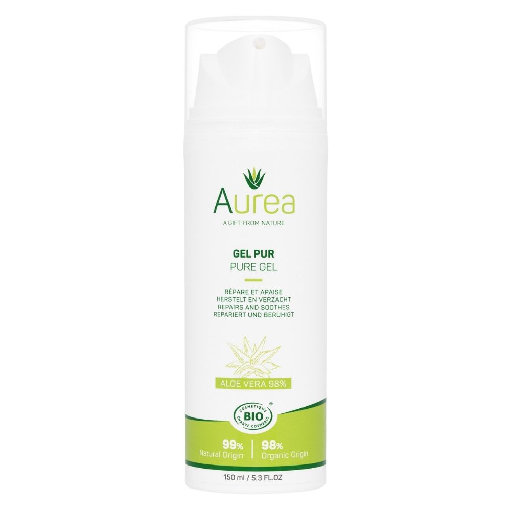 Aloe Vera Pure Gel de la Aurea are o textură lejeră, revigorează și calmează pielea, conține 98% Aloe Vera organic, este nerafinat și e întărit cu un agent gelifiant natural bogat în polizaharide pentru o îngrijire intensă și eficientă a pielii.
